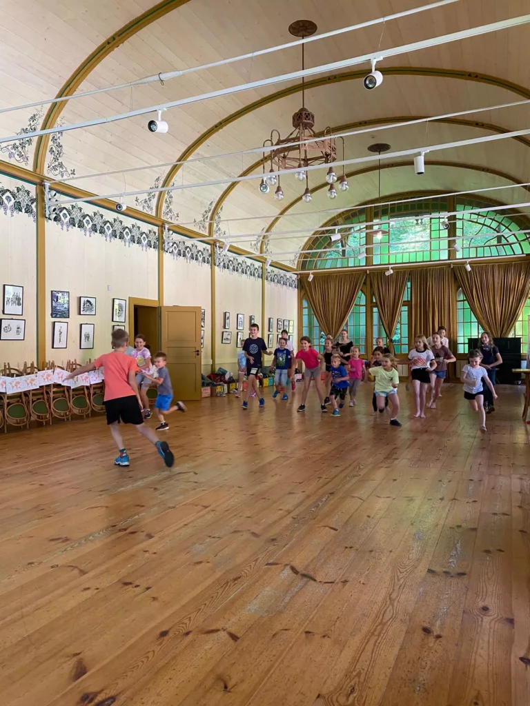 Program příměstského tábora probíhá v Tančírně v Račím Údolí v čase cca od 8:00 do 16:30. Doprava do Tančírny je vlastní, z Jeseníku a okolí je možnost dopravy linkovým autobusem v doprovodu vedoucích.