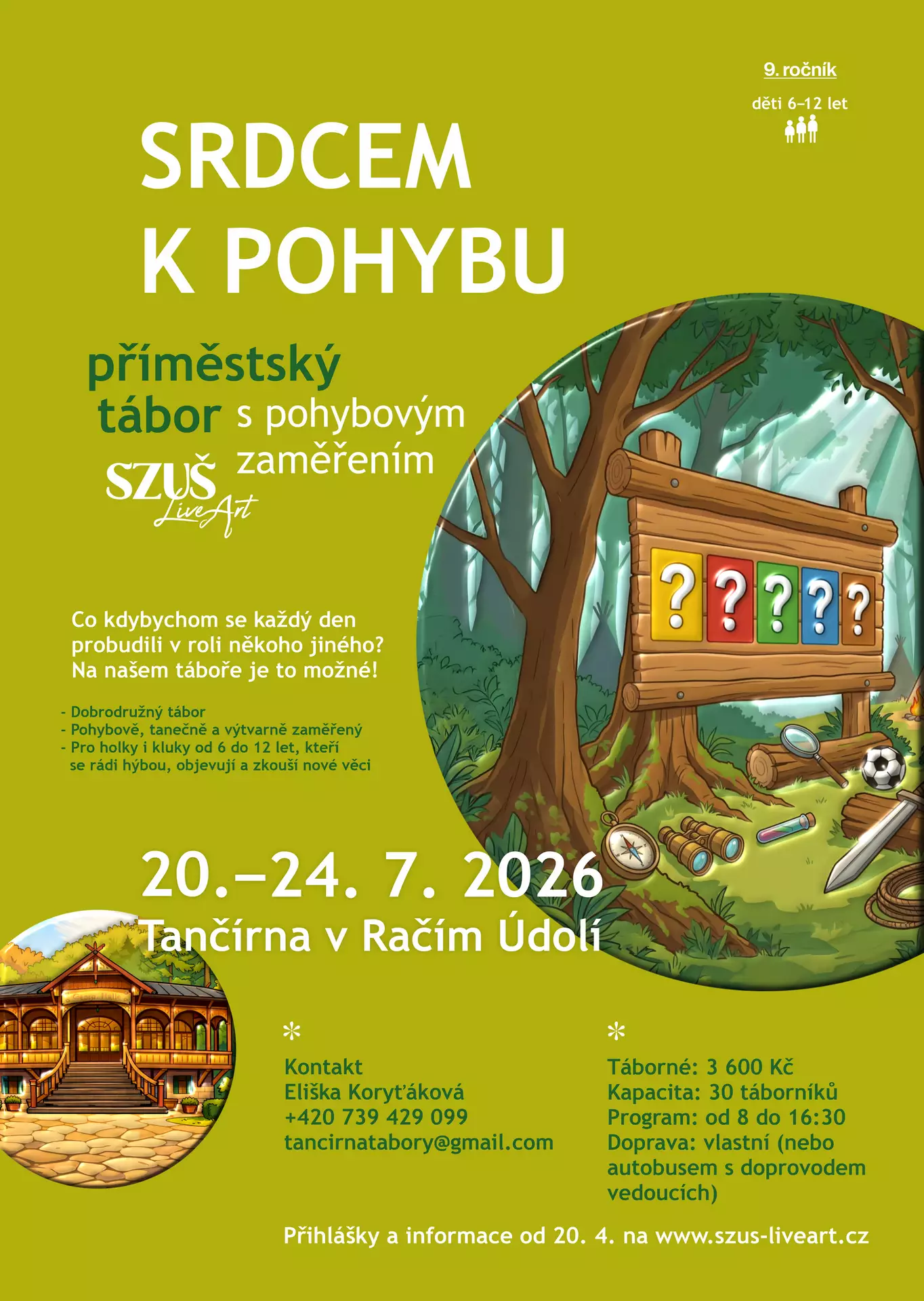 Co kdybychom se každý den probudili v roli někoho jiného? Na našem táboře je to možné! Pokud se nebojíš nových dobrodružství, jsi neustále v pohybu a taky rád tvoříš, přidej se k nám a prožij parádní týden v kouzelném prostředí Tančíny. Tábor je určen pro všechny malé objevitele, kteří mají rádi překvapení. Program je proto přísně tajný, ale můžeme prozradit, že nás čeká spousta zábavy a výzev. Od sportovních klání přes přírodovědné bádání až po kreativní tvoření. A kdo ví, možná se vydáme i ke hvězdám, tak neváhej ať ti neuteče tato šance!